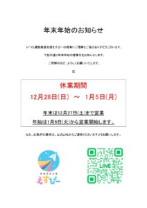 えすぴーの今年の年末年始のお休みは